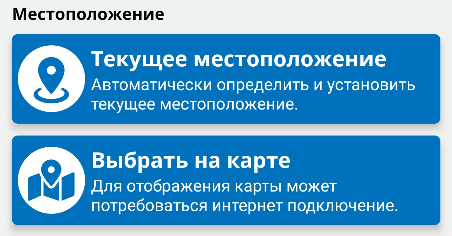 Кнопки для определения текущего или выбора точного местоположения проблемы на карте